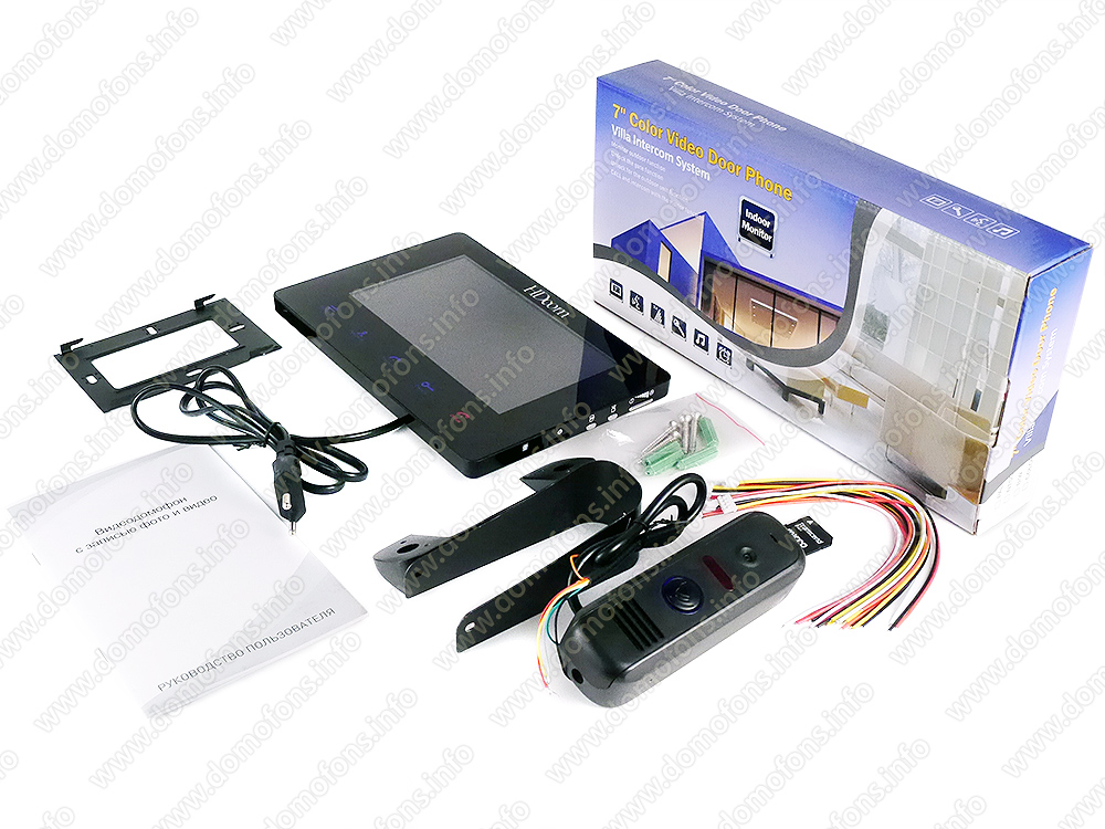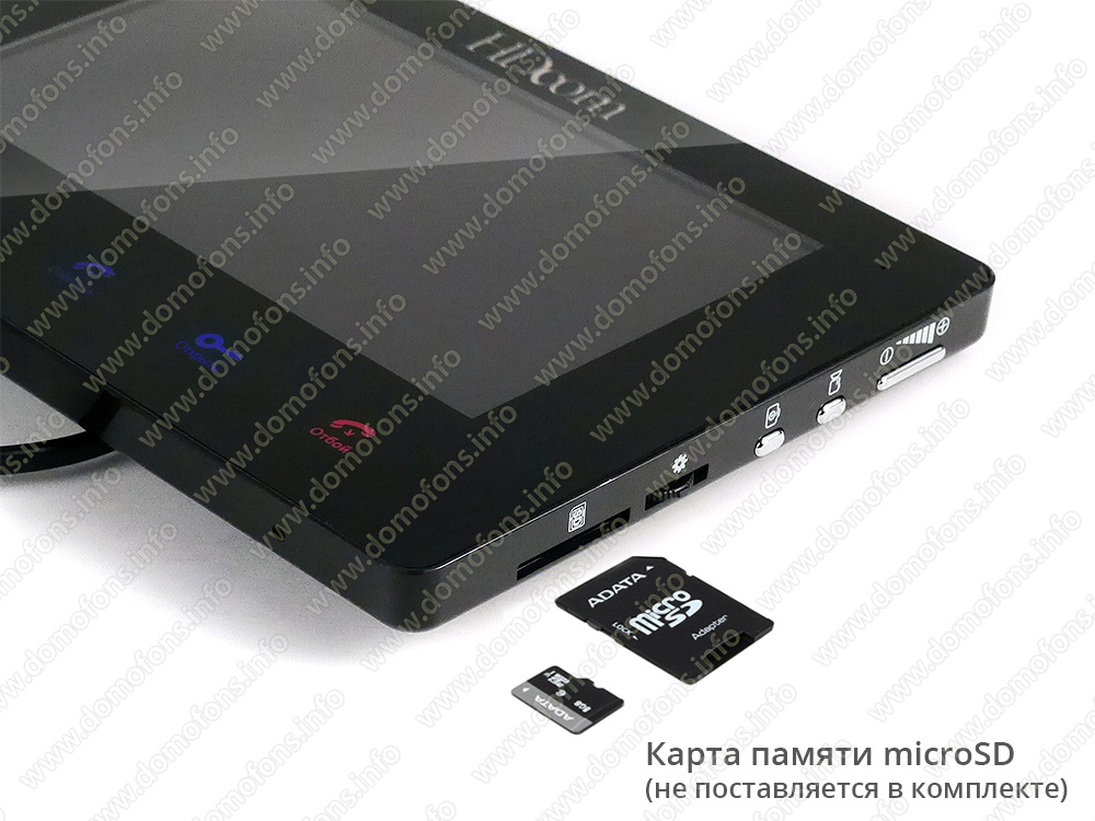Монитор поддерживает установку карты памяти формата SD объемом до 32 Гб, на которую может осуществляться запись фото и видео (приобретается отдельно).Если никто не отвечает на вызов, включится функция автоответчика, предлагающая посетителю оставить видеосообщение. Подключив электромагнитный или электромеханический замок к данному комплекту, Вы сможете открывать дверь дистанционноь с видеомонитора.